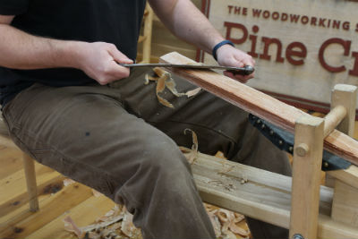 A precipitous tool helps immensely when sitting upon the shave horse. Information technology's easier to piece through the material with that freshly sharpened pocketknife. Become it sharp and keep it that way by honing and tuning it between uses. Information technology should be a rare occasion that it needs to render to the grinder.